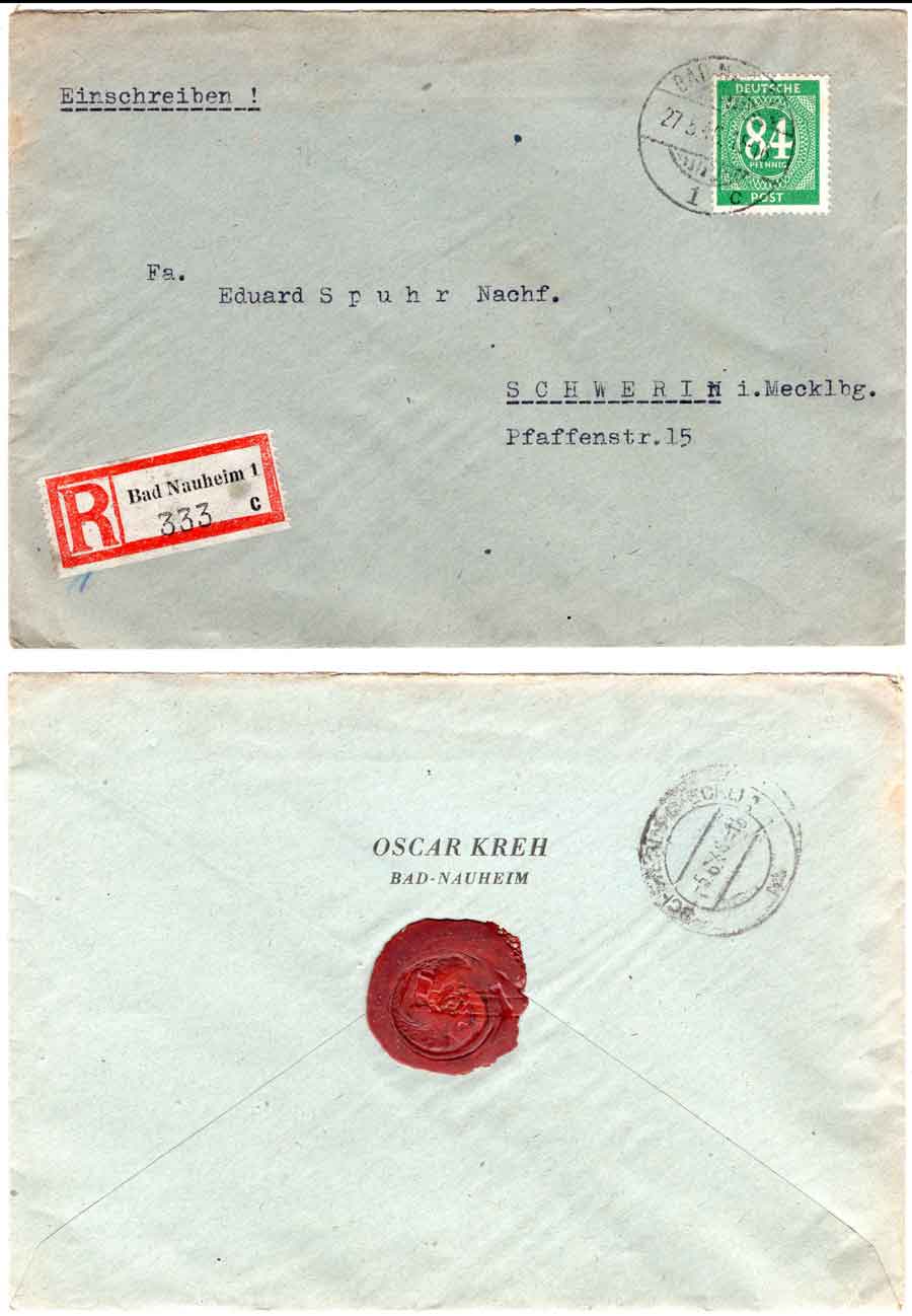 Kontrollratsausgabe Michel 936 auf R-Brief Bad Nauheim 27.5.1946