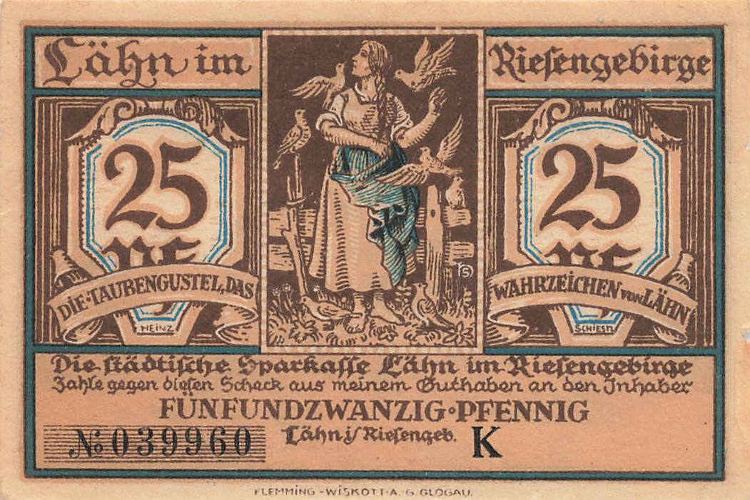 Lähn im Riesengebirge Schlesien Notgeldschein Wleń um 1920