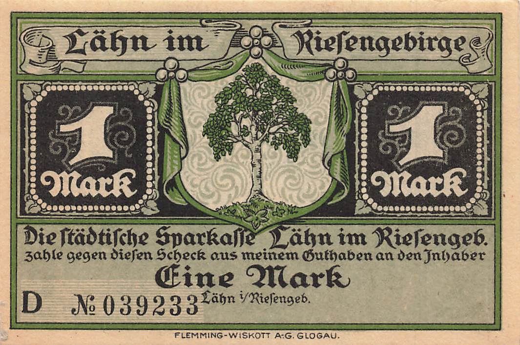 Lähn im Riesengebirge Schlesien Notgeldschein Wleń um 1920