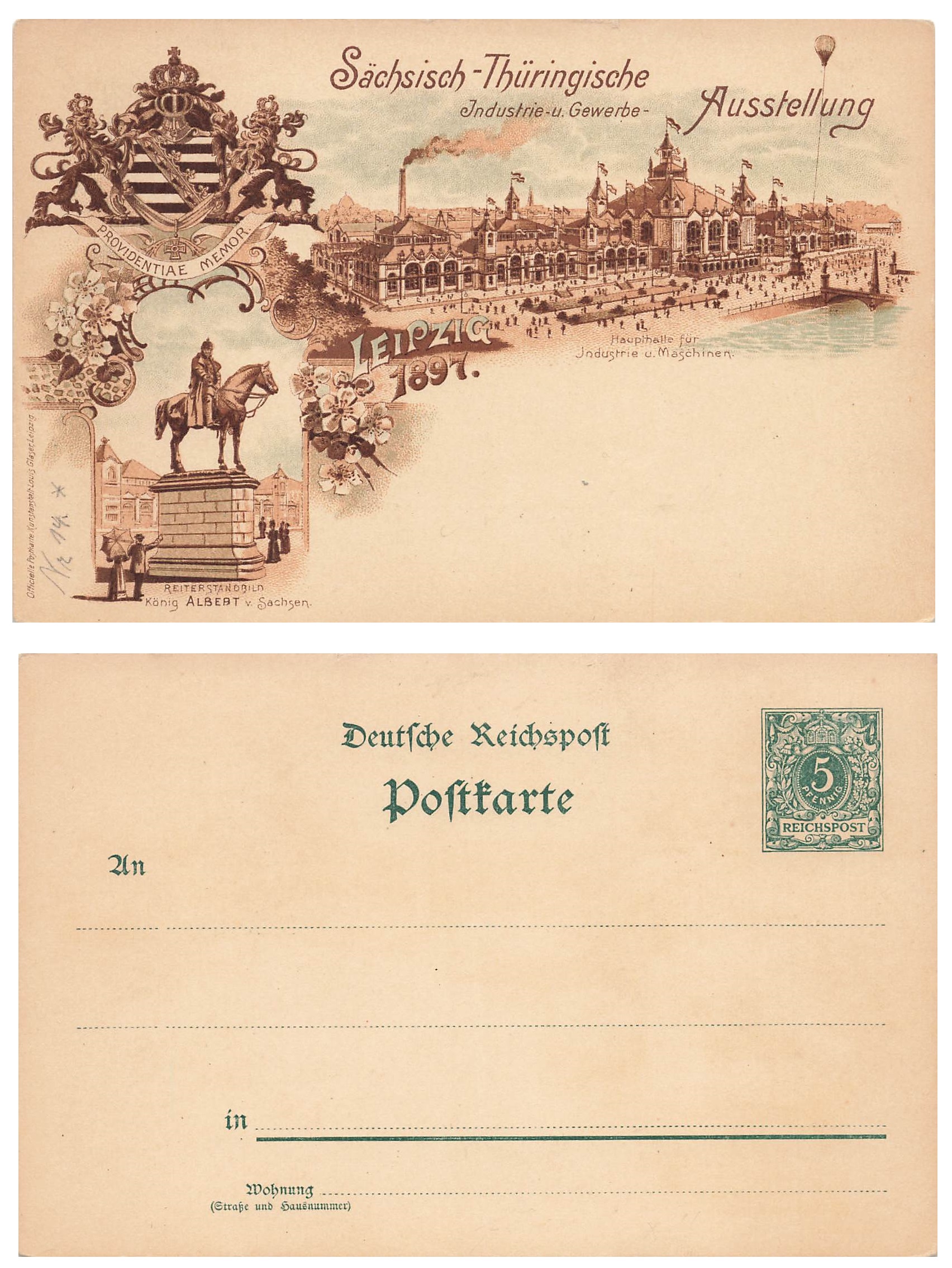 Leipzig Sächsisch- Thüringische Industrie und Gewerbe Ausstellung Privatganzsache 1897 Offizielle Postkarte