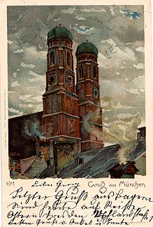 München Frauenkirche Künstlerkarte Heinrich Kley o 31.3.1899