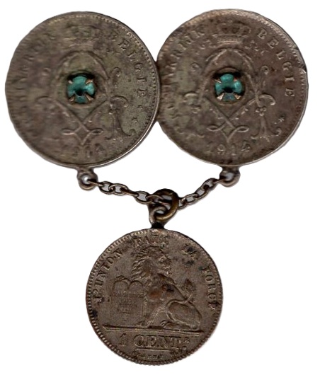 Muenzbroche mit Steinen besetzt aus Belgien 1.WK Flandernschlacht