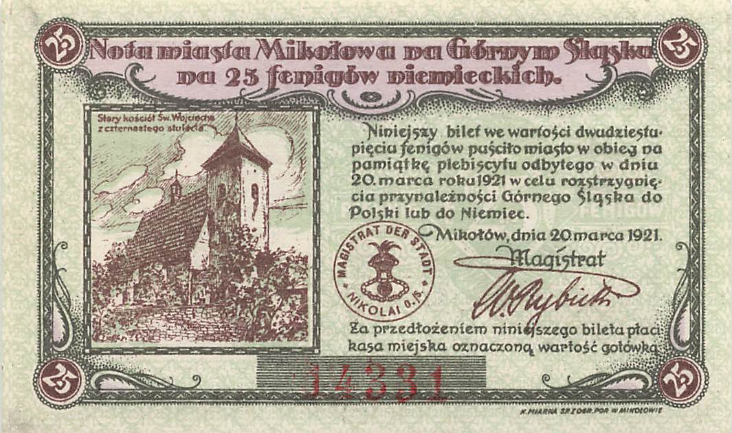 Nikolai Oberschlesien Notgeldschein Mikołów 1921