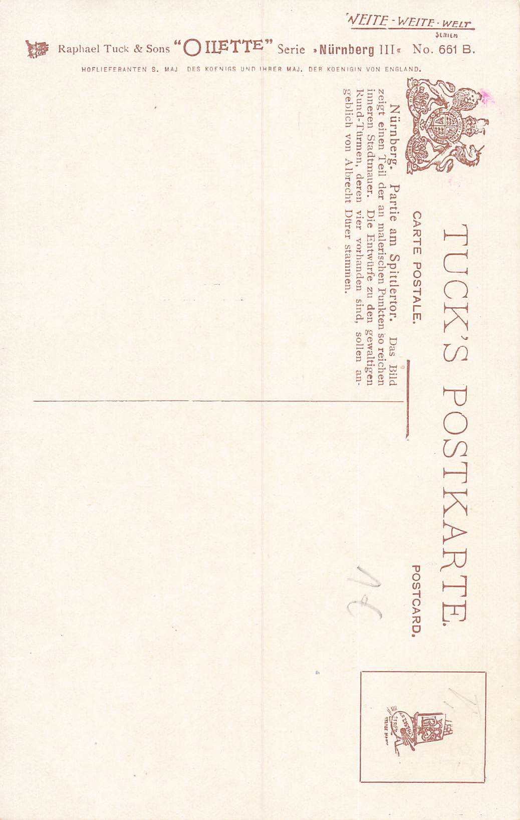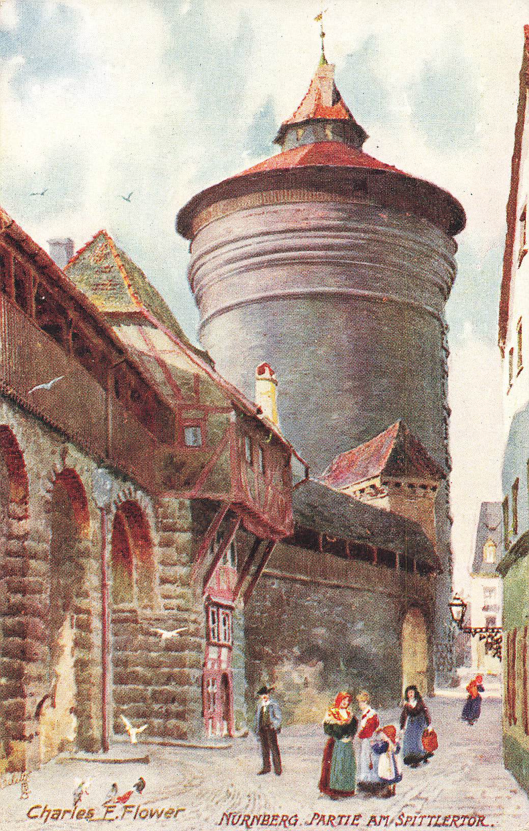 Nürnberg Spittlertor Künstlerkarte Charles F. Flower Tucks Oilette * um 1910