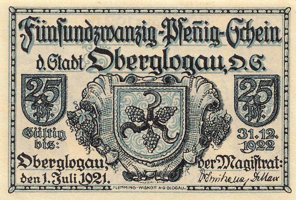 Oberglogau Oberschlesien Notgeldschein Głogówek 1921