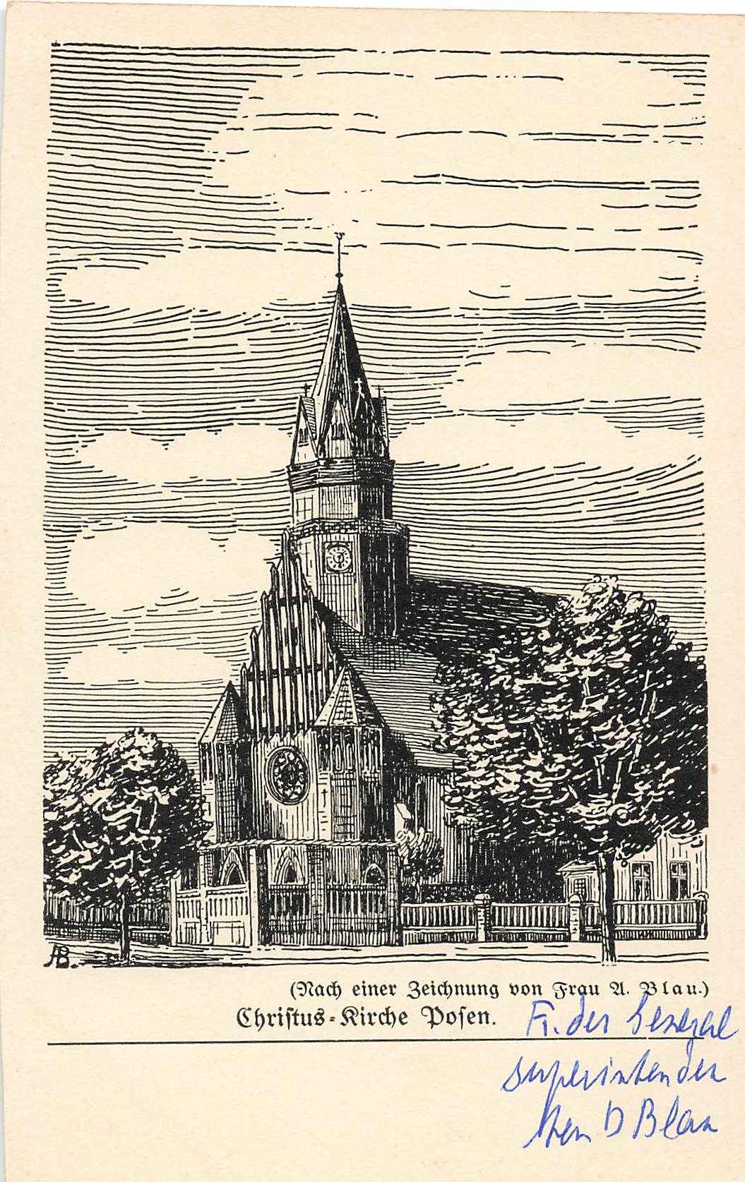 Posen Christus Kirche Künstlerkarte A. Blau Poznan * um 1930