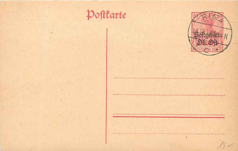 Postgebiet Ob. Ost Ganzsache 10 Pfennig Germania o Riga 24.12.1918