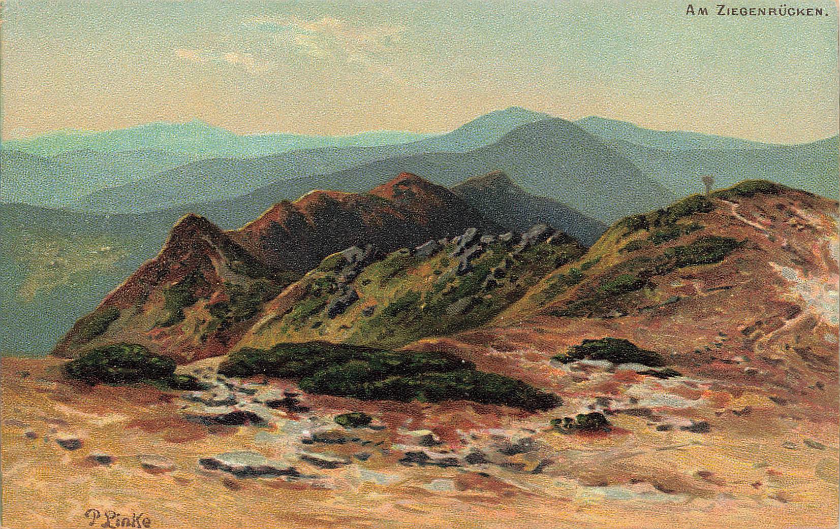 Riesengebirge Ziegenrücken Künstlerkarte Paul Rudolf Linke Schlesien * um 1900 Kunstverlag Max Leipelt