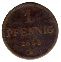 Sachsen Königreich 1 Pfennig 1854 F Johann