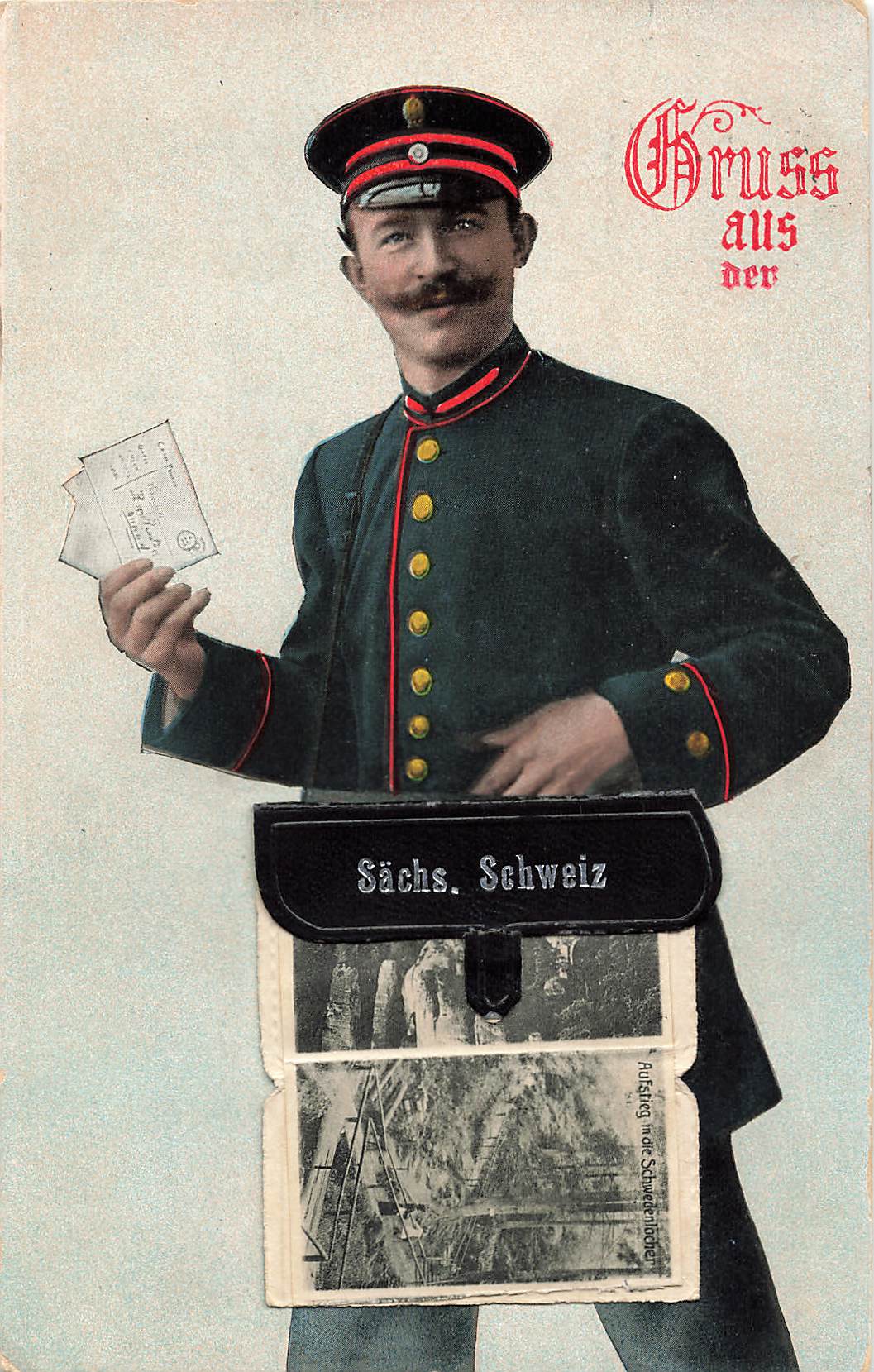 Sächsische Schweiz Briefträgerkarte mit Lporello o 1914