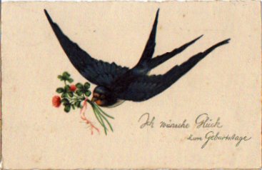 Schwalbe mit Kleeblättern im Schnabel o 2.9.1925