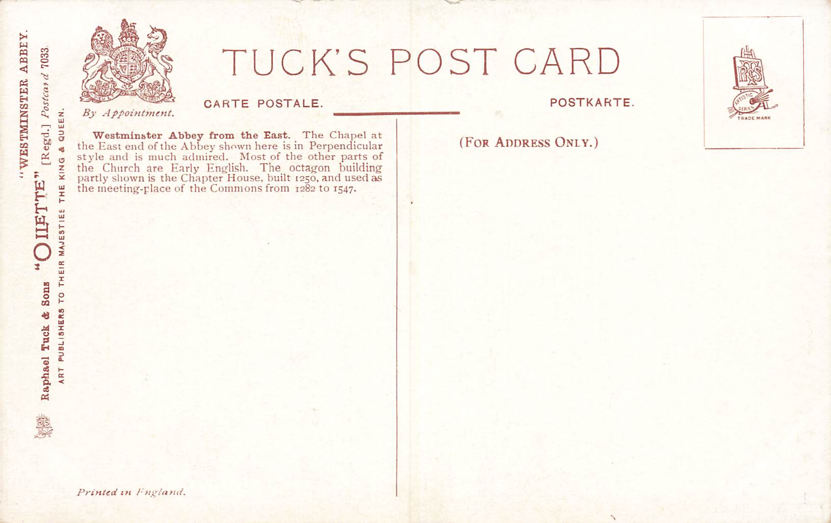 Westminster Abbey Künstlerkarte Charles E. Flower Tucks Oilette * um 1910