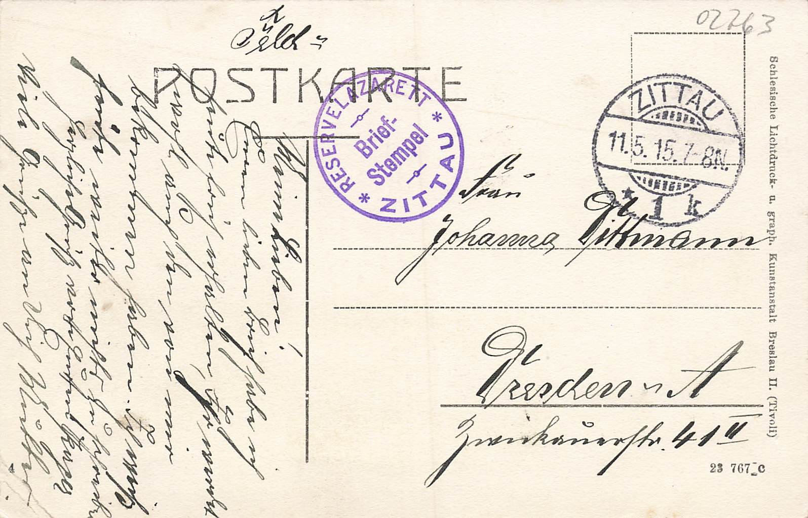 Zittau Sachsen Stadtgärtnerei Feldpost Reservelazarett o 1915