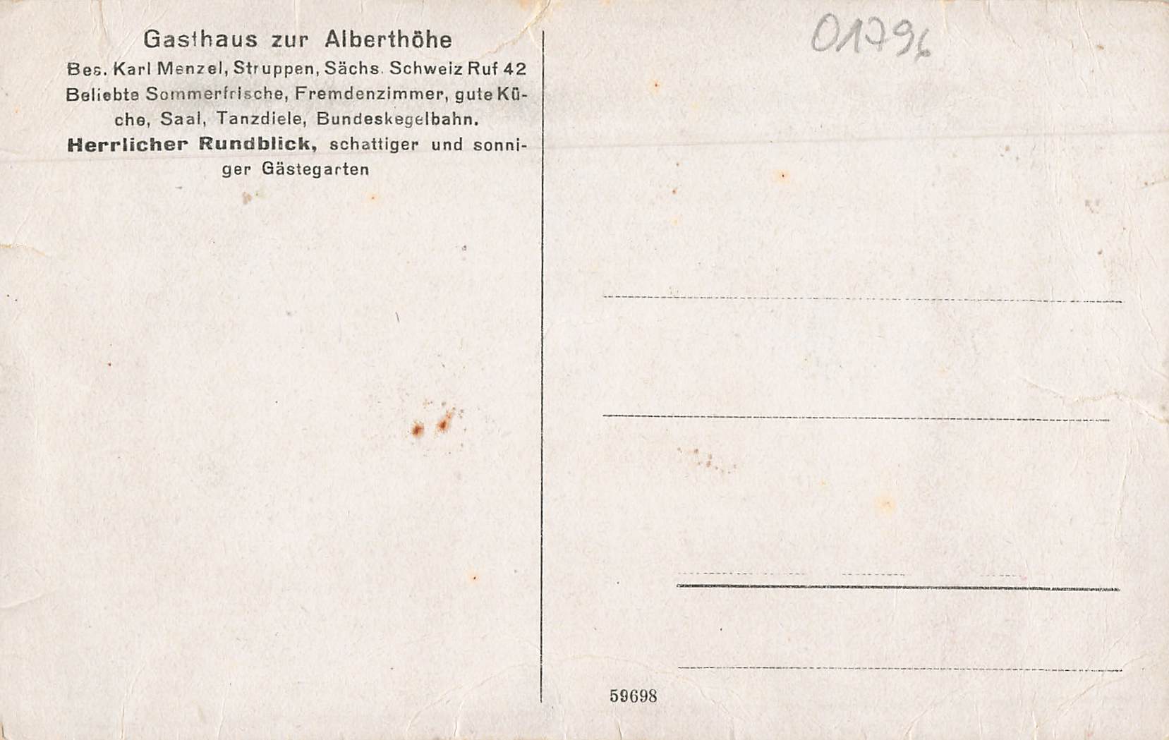 01796 Struppen Saxon Switzerland Gasthaus Alberthoehe * around 1930