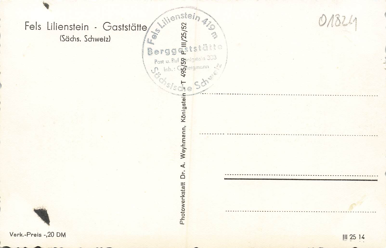 01824 Lilienstein Restaurant Saxon Switzerland * around 1960