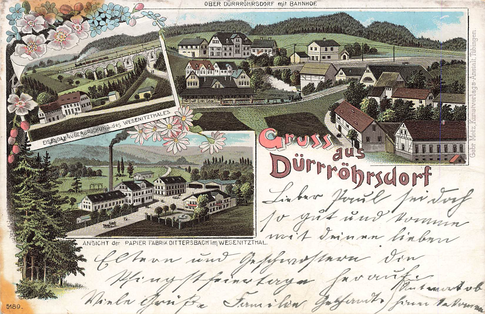 01833 Duerrroehrsdorf mit Bahnhof Litho o 1900