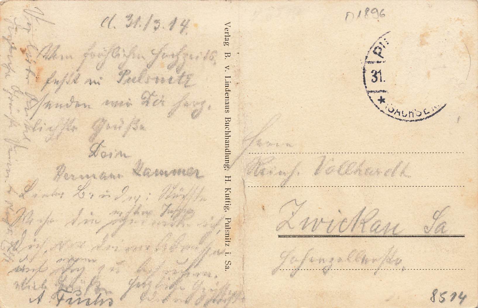 01896 Pulsnitz Hotel grauer Wolf o 1914