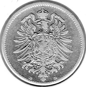 1 Mark 1881 D German Empire Silver Coin Jaeger 9 Material: Silver Weight: 5.56 g Fineness: 900 ‰ (fine weight 5.00 g) Diameter: 24.00 mm