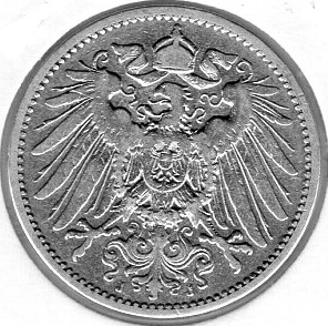 1 Mark 1892 J German Empire Silver Coin Jaeger 17 Large Eagle Material: Silver Weight: 5.55 g Fineness: 900 ‰ (fine weight 5.00 g) Diameter: 24.00 mm