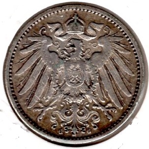 1 Mark 1896 G German Empire Silver Coin Jaeger 17 Large Eagle Material: Silver Weight: 5.55 g Fineness: 900 ‰ (fine weight 5.00 g) Diameter: 24.00 mm