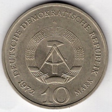 10 Mark GDR 1972 Buchenwald Memorial Catalog number Jaeger 1539 Copper / Zinc / Nickel Mint condition - unornamented