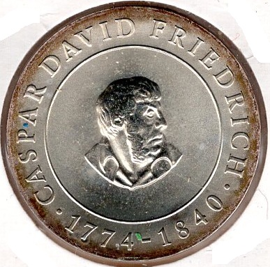 10 Mark GDR 1974 Caspar David Friedrich Catalog number Jaeger 1553 Material: Silver Weight: 17.00 g Fineness: 500‰ (Fine weight 8.50 g) Diameter: 31.00 mm