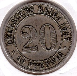 20 Pfennig 1887 J German Empire
