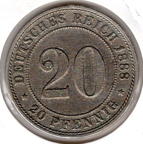 20 Pfennig 1888 G German Empire Catalog Number: Jaeger 6 Material: Copper-Nickel Weight: 6.25 g