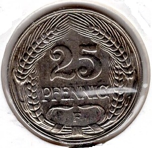 25 Pfennig 1909 F German Empire Catalog number: Jaeger 18 Material: Nickel
