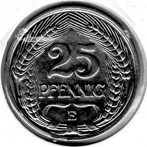 25 Pfennig 1910 E German Empire Catalog number: Jaeger 18 Material: Nickel