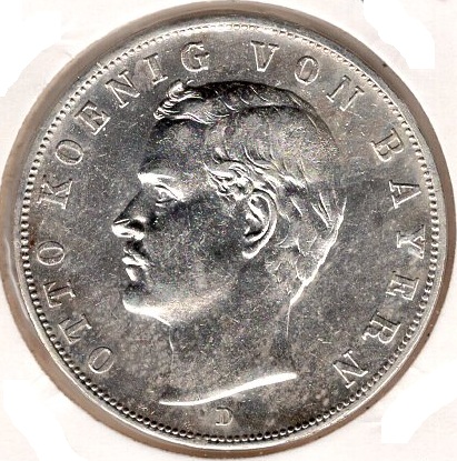3 Mark Bavaria 1911 Otto Silver Coin Catalog Number: Jaeger 47 Material: Silver Weight: 16.67 g Fineness: 900‰ (Fine weight 15.00 g)