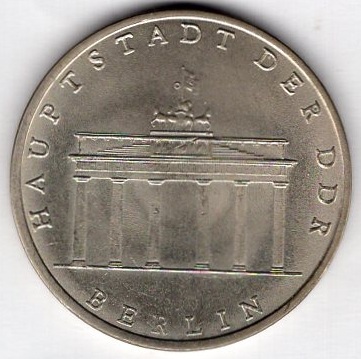 5 Mark GDR 1971 Brandenburg Gate Catalog number Jaeger 1526 Copper / Zinc / Nickel Freshly minted