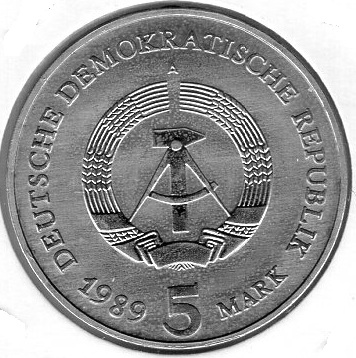 5 Mark GDR 1989 Brandenburg Gate Catalog number Jaeger 1536 Copper / Zinc / Nickel Uncirculated