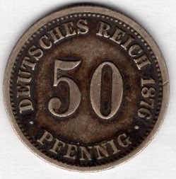 50 Pfennig 1876 C German Empire Silver Coin Material: Silver Weight: 2.78 g Fineness: 900 ‰ (fine weight 2.50 g) Diameter: 20.00 mm