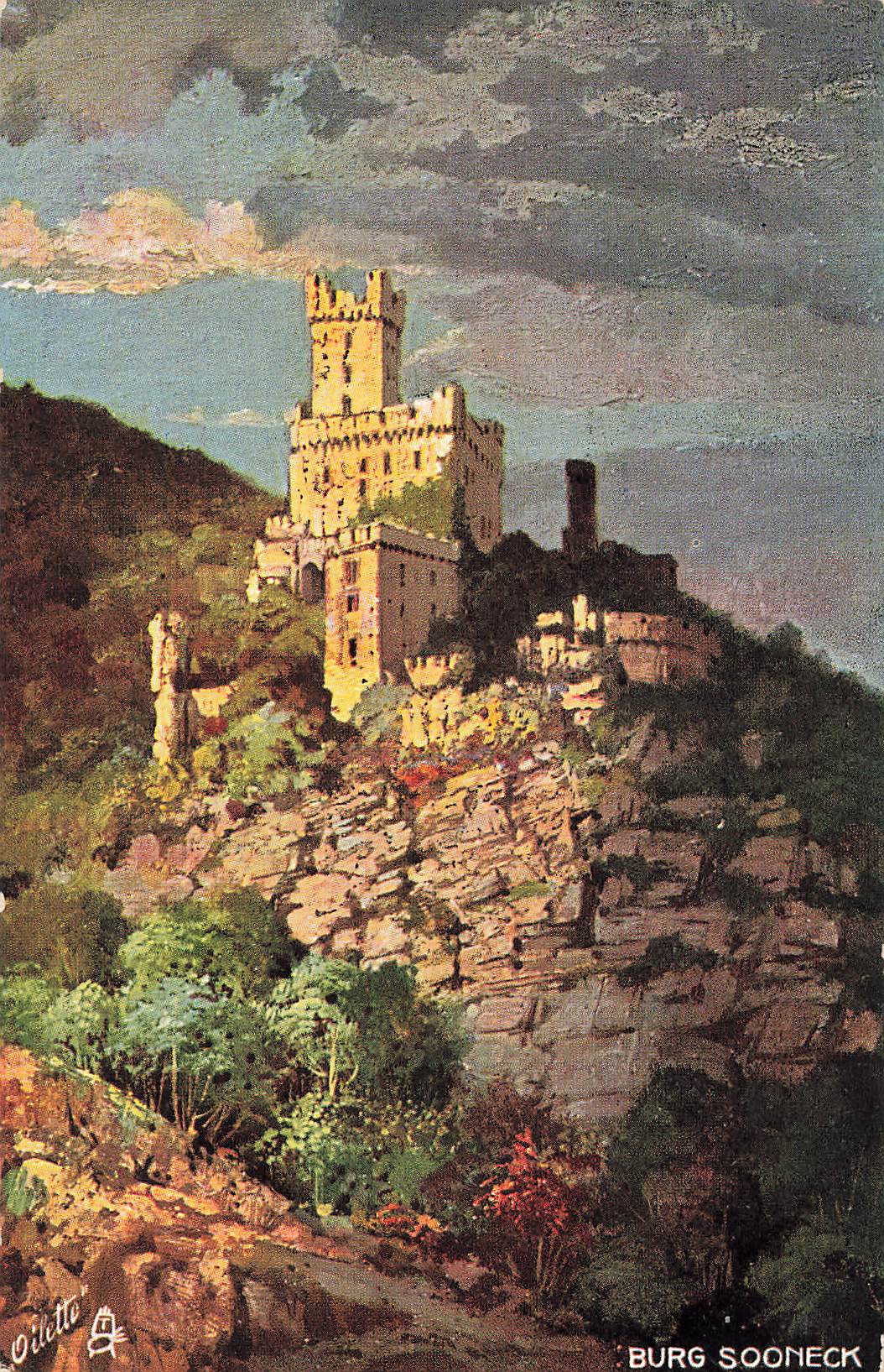 55413 Niederheimbach, Sooneck Castle, artist's postcard, Tucks Oilette * circa 1910