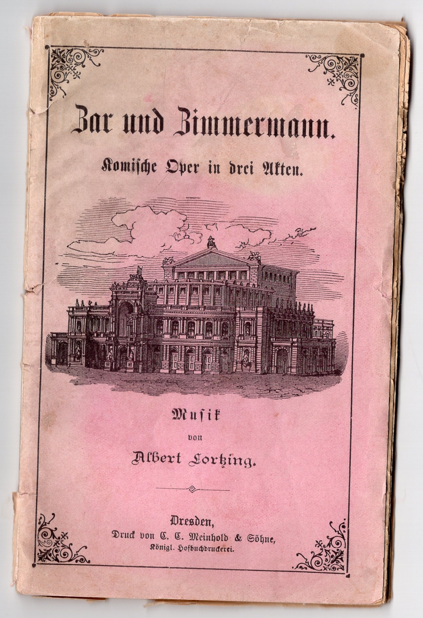 Albert Lortzing "Tsar and Carpenter" Semperoper Dresden textbook around 1900 72 pages Meinhold & Sohne publishing house