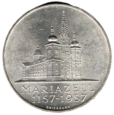 Austria 25 Schilling 1957 Mariazell Silver Coin Material: Silver Weight: 13 g Fineness: 800‰ (Fine weight 10.4 g) Diameter: 30.00 mm
