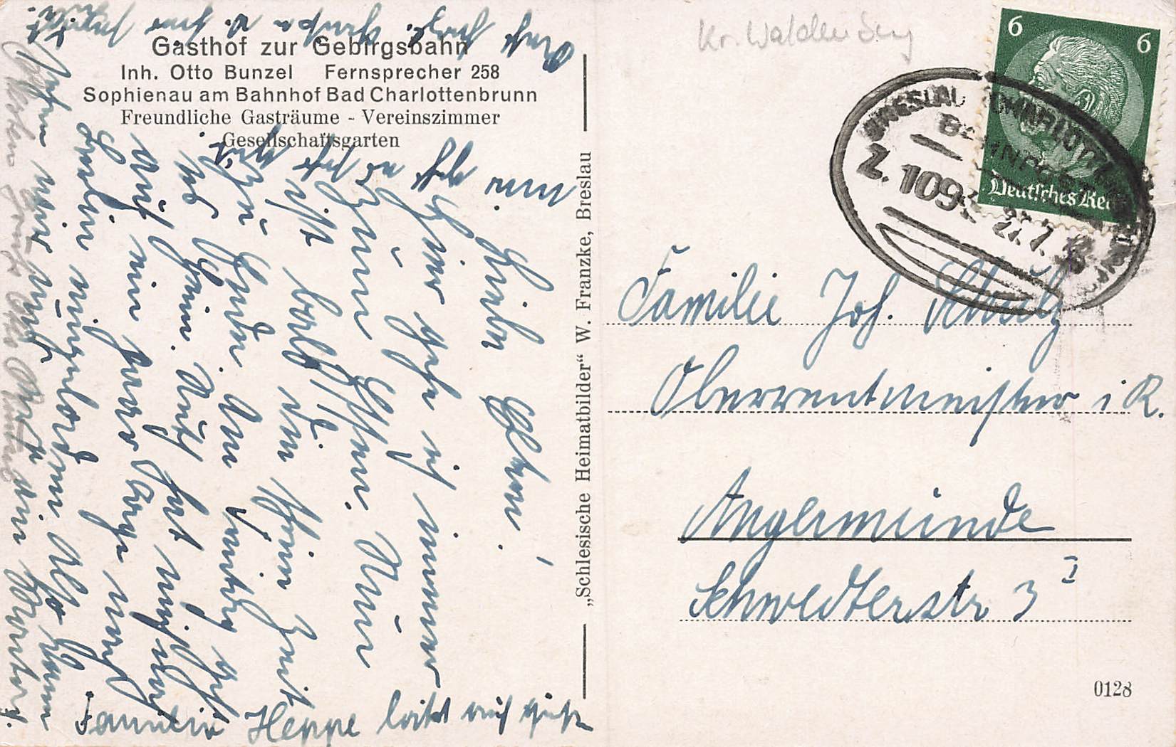 Bad Charlottenbrunn Gasthof Gebirgsbahn Sophienau Silesia Jedlina-Zdrój o 1936