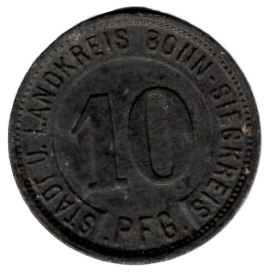 Bonn-Sieg district emergency money 10 pfennigs 1919 emergency coin