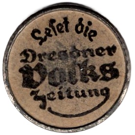 Dresden tram token 20 pfennigs Volkszeitung advertisement