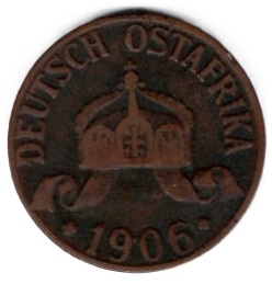 German East Africa 1 Heller 1906 J