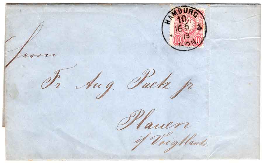 German Empire Michel 33 on a letter from Hamburg June 16, 1879 to Plauen