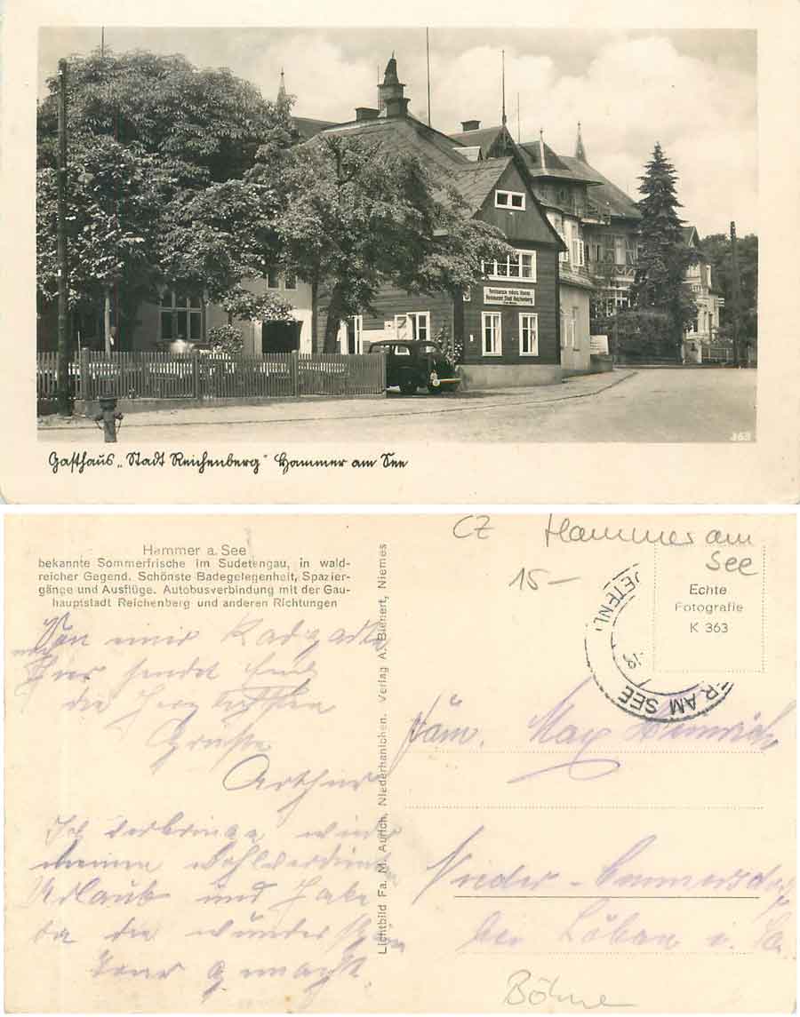 Hammer am See Gasthaus "Stadt Reichenberg" o ca. 1930