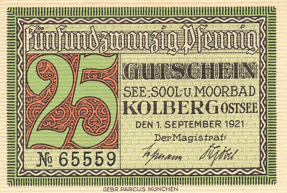 Kolberg Baltic Sea Pomerania Kołobrzeg Emergency banknote 1921