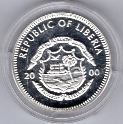 Liberia 5 Dollars 2000 Endangered Elephant Silver Coin Catalog Number: KM 584 Material: Silver Weight: 8.54 g Fineness: 999 ‰ (Fine weight 8.53 g)