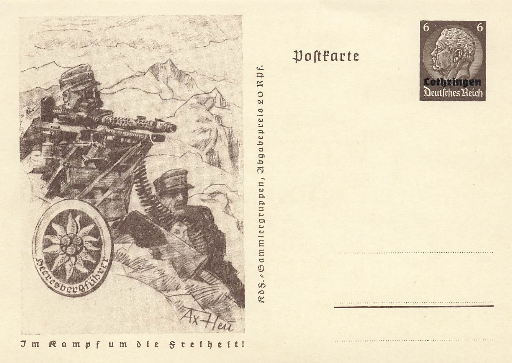 Lorraine on the German Empire 6 Pfennig Hindenburg postal stationery In the fight for freedom Army mountain leader *