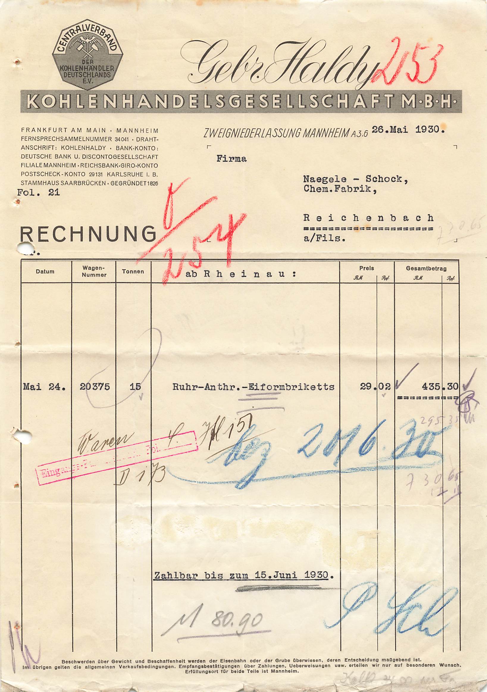 Mannheim coal dealer Haldy brothers letterhead 1930