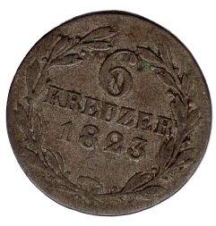 Nassau Herzogthum 6 Kreuzer 1823 Wilhelm