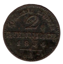 Preussen 2 Pfennig 1854 A Friedrich Wilhelm VI.