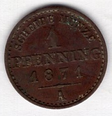 Prussia 1 Pfennig 1871 A Wilhelm I.